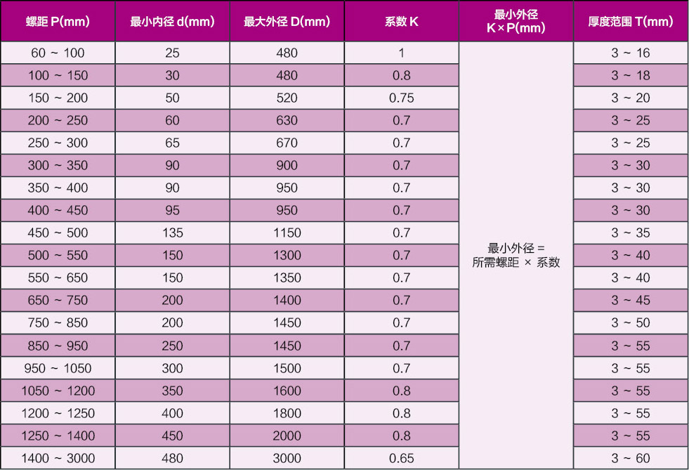 1、可成型大而厚,材質(zhì)為低碳鋼、低合金鋼、耐磨鋼及不銹鋼的等徑、等螺距、變徑、變螺距、及內(nèi)孔圓周和外徑圓周帶凸臺或豁口要求的多種形式的“分段等厚螺旋葉片”。
