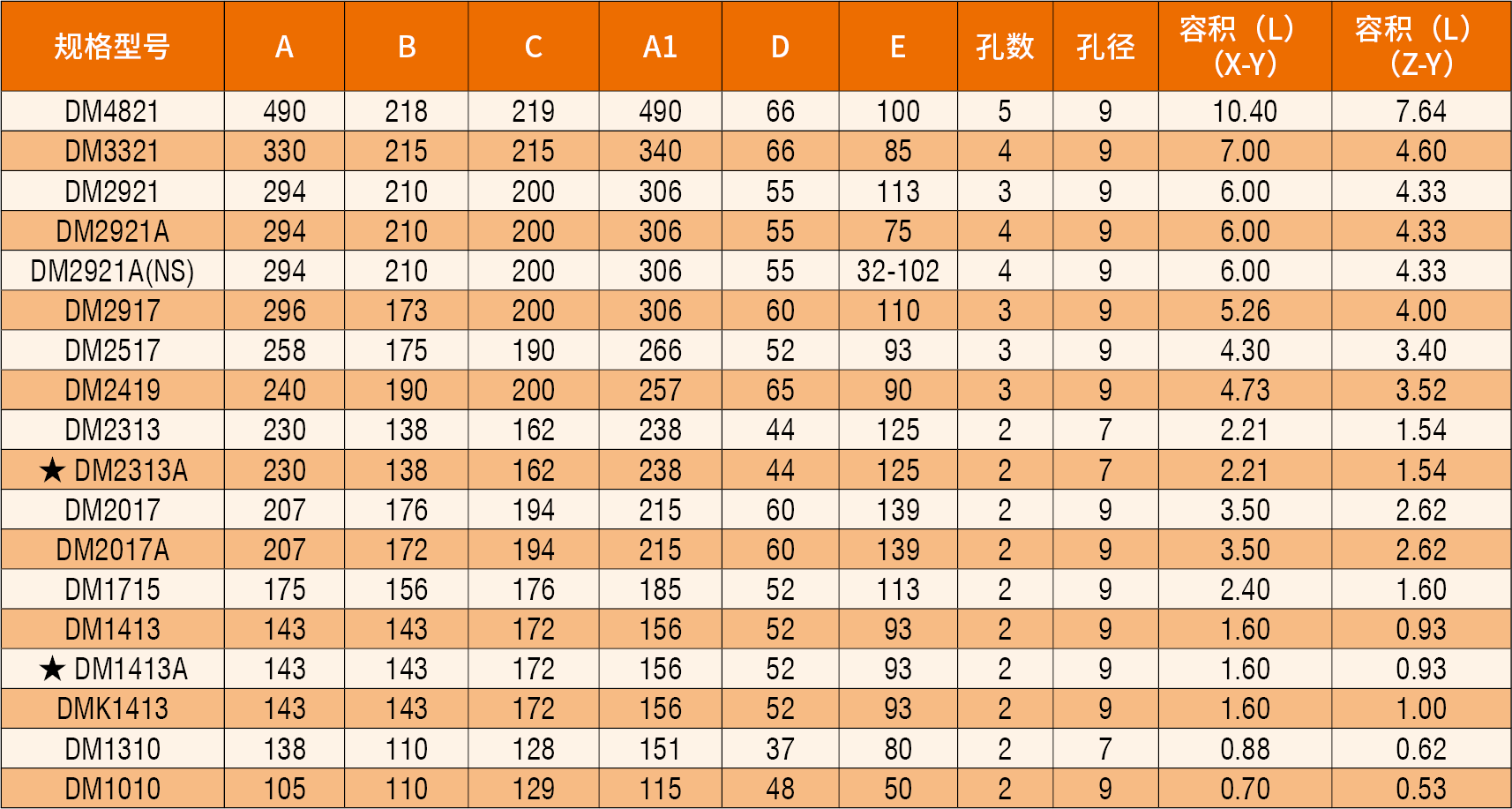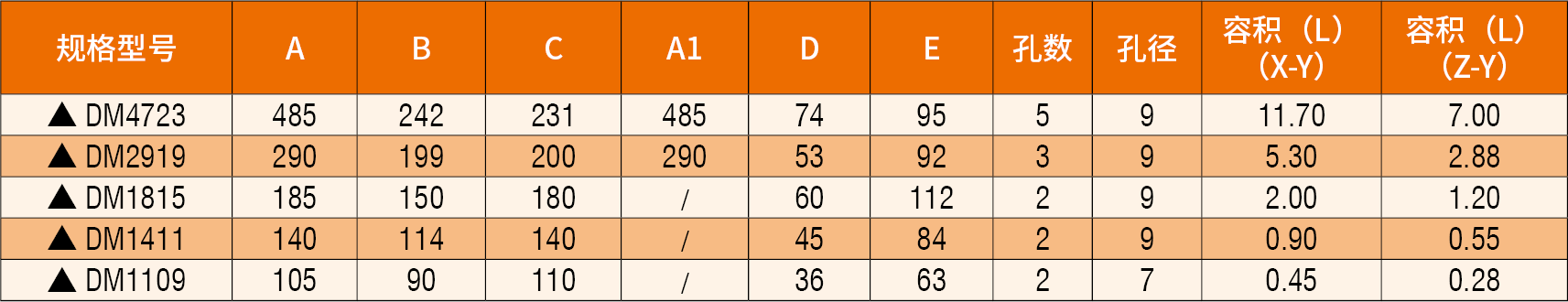 備注:上述五個加“▲”的規(guī)格,安裝孔凸臺及背部流道的擋邊下端特別加高。