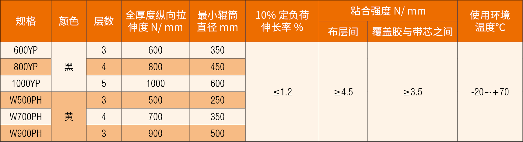骨架材料選用低收縮、高卷曲度的合成聚酯纖維浸膠帆布,采用抗靜電橡膠配方,是糧食及食品行業(yè)應用廣泛的橡膠提升帶。